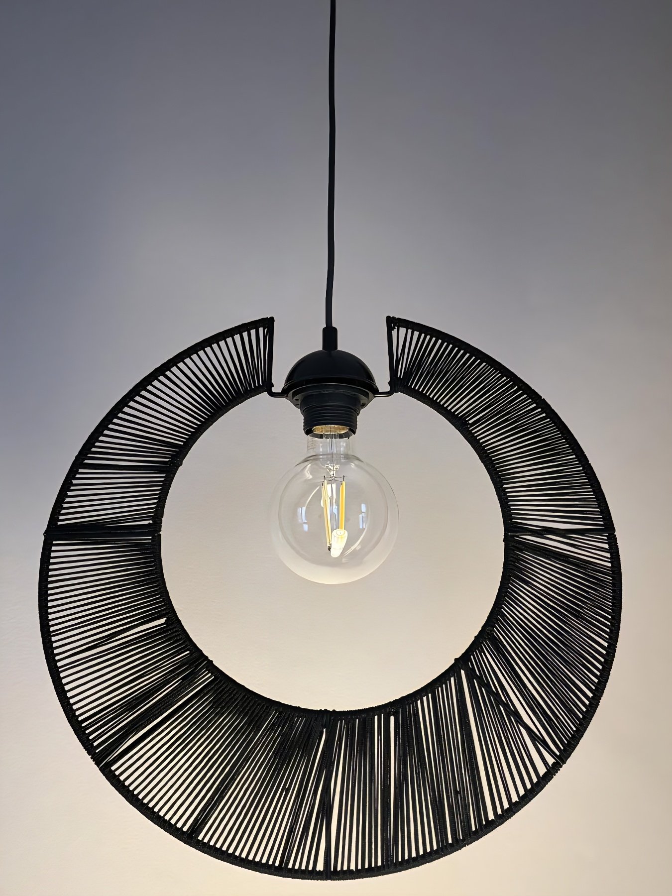 Πλεκτό φωτιστικό μακραμέ σε μαύρη απόχρωση (Φ45 cm / Ντουί Ε27). Ιδιαίτερο, επιβλητικό με πολυπολιτισμικό χαρακτήρα χειροποίητο έργο, το οποίο αποπνέει μια αίσθηση μαροκινής ατμόσφαιρας στο χώρο που θα επιλέξετε ...
