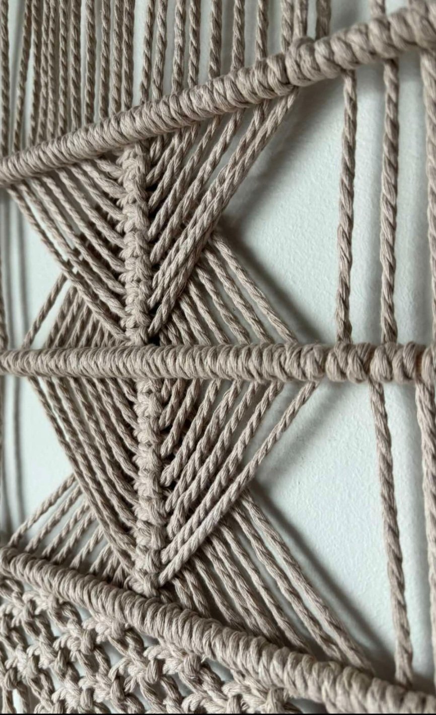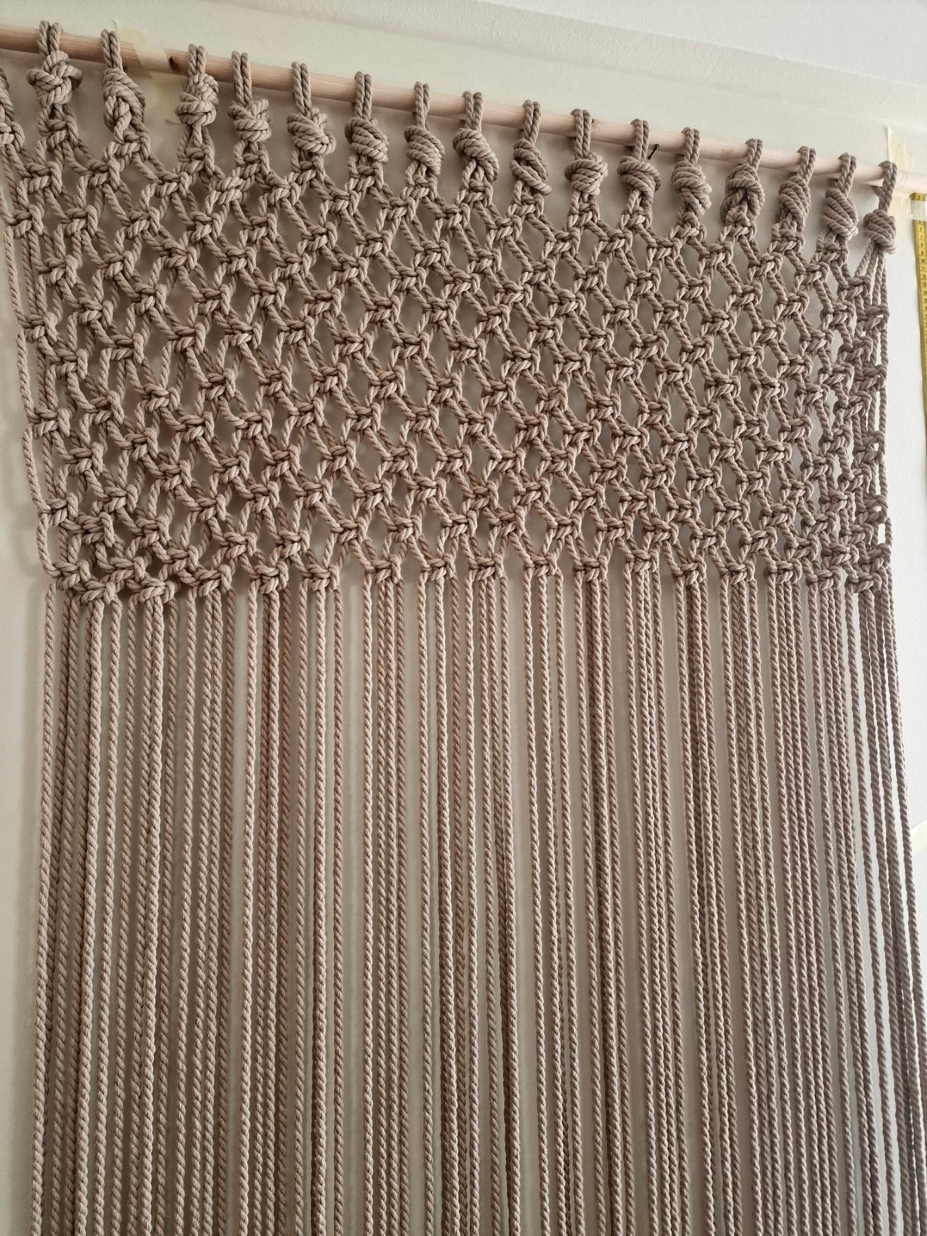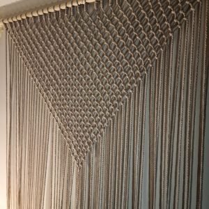 Κουρτίνα μακραμέ σε μπεζ οικολογικό νήμα με ξύλινη ράβδο στήριξης. Πρωτότυπη και δημιουργική πρόταση κατάλληλη για εσωτερικούς και εξωτερικούς χώρους. Συνδυάζεται αρμονικά με πολλούς τρόπους διακόσμησης ενώ παράλληλα δημιουργεί τις κατάλληλες προϋποθέσεις για σκίαση και αυξημένο αίσθημα ιδιωτικότητας στο χώρο!