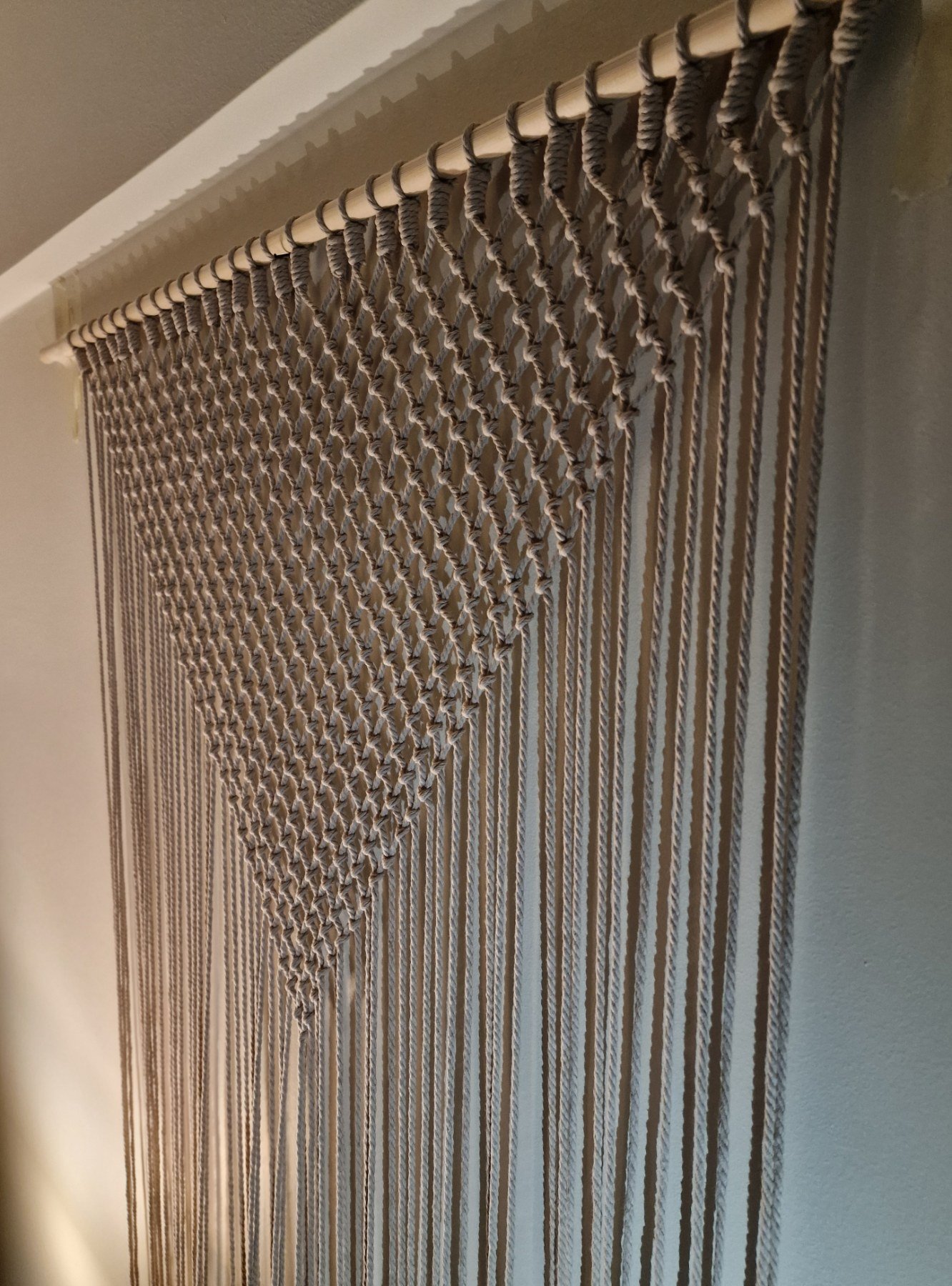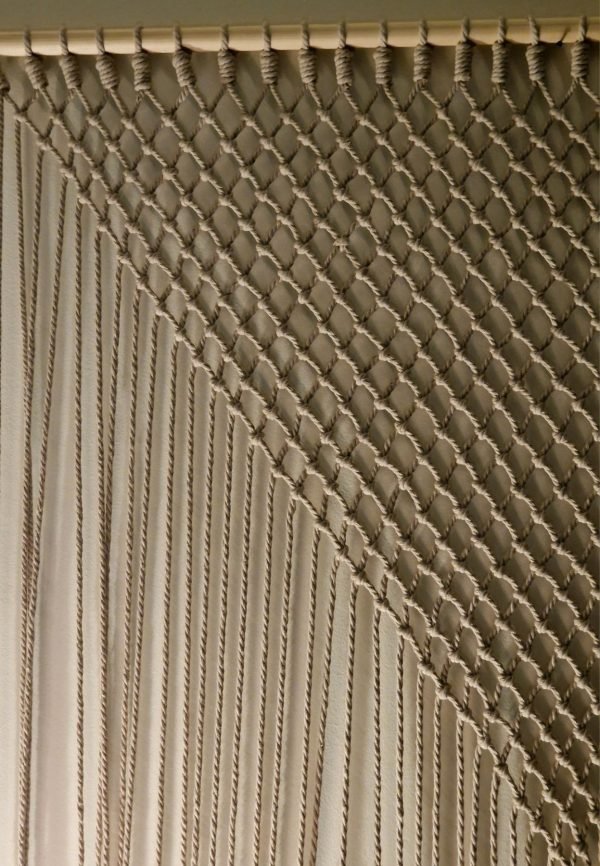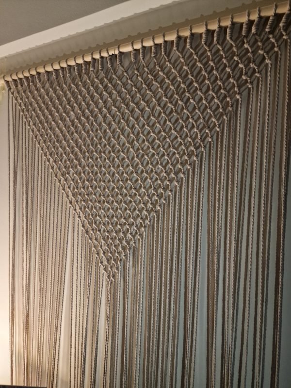 Κουρτίνα μακραμέ σε μπεζ οικολογικό νήμα με ξύλινη ράβδο στήριξης. Πρωτότυπη και δημιουργική πρόταση κατάλληλη για εσωτερικούς και εξωτερικούς χώρους. Συνδυάζεται αρμονικά με πολλούς τρόπους διακόσμησης ενώ παράλληλα δημιουργεί τις κατάλληλες προϋποθέσεις για σκίαση και αυξημένο αίσθημα ιδιωτικότητας στο χώρο!